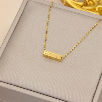 Collar de placa de nombre personalizado de moda para mujer cadena de eslabones de Oro inicial de 18 quilates con patrón geométrico joyería de moda de aniversario