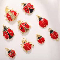 Fermaglio per coccinella insetto placcato oro nero smalto rosso sul fascino